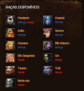 Outras raças além dos Pandarens podem ser monges, além disso, eles podem ser da horda ou da aliança. Confira na tabela abaixo as raças que podem ter esta classe.