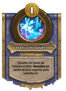 O poder heroico do Galakrond habilita que seja trocado um lacaio da taverna do Bob pela descoberta de um lacaio de rank superior. A busca aqui é por lacaios mandatórios de rank cinco ou seis, ou lacaios fortes de tempo. É um heroi difícil de ser jogado e tem alguma tendência de ficar pra trás, já que o ouro será usado para investir em aprimoramento de lacaios na taverna.