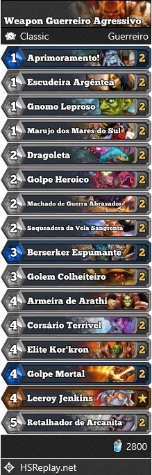 O deck Agressivo é aquele formato, bate o mais rápido possível para ganhar, caso chegue num certo ponto, não tem mais como ganhar e ESC + Conceder vai ser seu melhor combo. Listas agressivas que são mais usadas são o Zoolock e o Face Hunter, então esse deck não tem tanta presença na ranqueada assim.