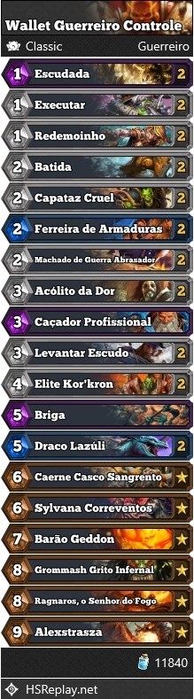 Guerreiro tem uma lista Controle com curva para todas as curvas de mana. Isso se deve ao fato da partida ser muito melhor com controle de mesa e jogadas em todos os turnos. O Controle aqui não é só poder heroico e passa.