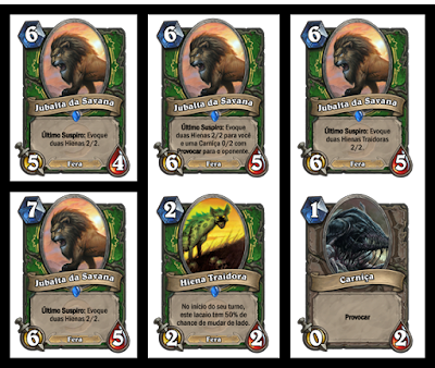 Essa versão já complica, mantém o custo, mas dá uma ajuda para o oponente. Ainda fica temático, né? Já que o leão morreu, ficou só a carniça dele para as [Hienas] comerem.