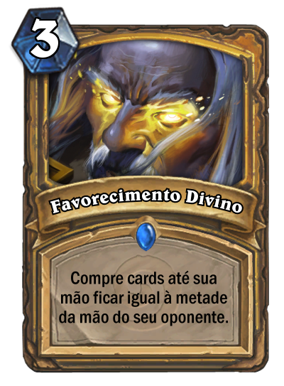 Se for pra nerfar algo de Paladino, que seja essa carta. Essa é a única carta no jogo que deixa jogadores desleixados com possibilidades de volta ao jogo contra jogadores mais controlados e que punem jogadores desleixados. Você de Jaina segurando bem o jogo, controlando a mesa e o oponente jogando todas as cartas da mão o tempo todo sem parar, você se estabiliza lá com seus 10 de vida e 5 cartas na mão, o oponente não tem mais recursos até comprar essa carta.