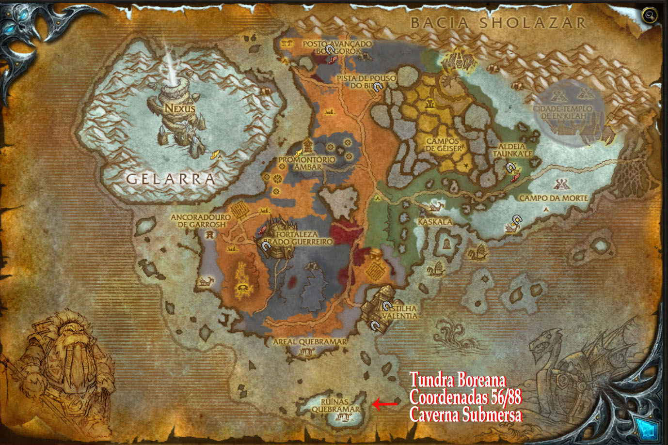 Primeiro você deve ir para Nortúndria, no mapa Tundra Boreana. Uma dica para chegar mais rápido é usar o zepelim em Orgrimmar, pois ele vai direto ao mapa.